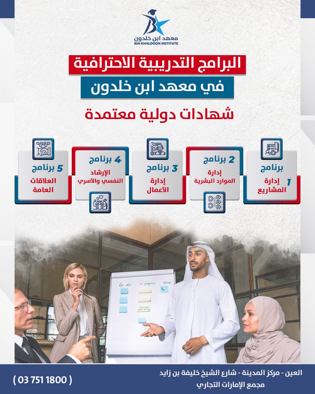 في هذا السياق، يلعب معهد ابن خلدون للتدريب والتعليم دورًا محوريًا منذ تأسيسه عام 1993، حيث يقدم مجموعة واسعة من البرامج والدورات التدريبية المعتمدة محليًا ودوليًا. هذه البرامج صُممت بعناية لتلبي احتياجات الأفراد والمؤسسات على حد سواء، مع التركيز على تطوير المهارات الإدارية، التقنية، واللغوية، بما يتناسب مع متطلبات سوق العمل المحلي والإقليمي.